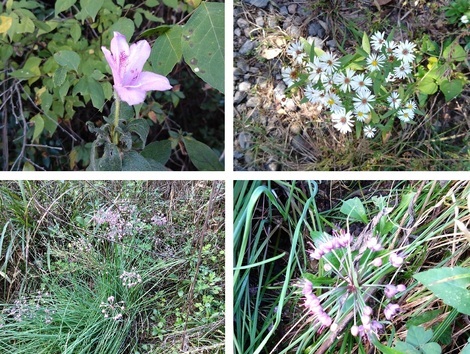 下の左上は「つつじの返り咲き」、右上は「ノコンギク」です。