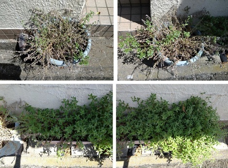 下段は玄関先の「マツバボタンが植えてありましたプランター」ですが、「スベリヒユ」に占領されていました。