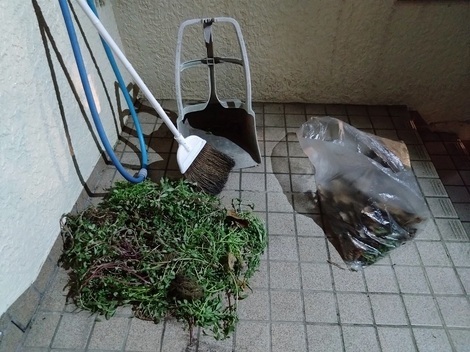 庭の「生協の袋」を玄関にもってきましたので、玄関先の「スベリヒユ」や「家庭ごみ」も詰めまして、明日の月曜日に「可燃ゴミ取集場所」へ出します。