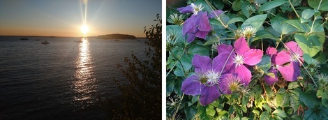 ・今朝もホテルの周りをお散歩を・・・散歩時に撮りました「日の出」と「クレマチス」です。
