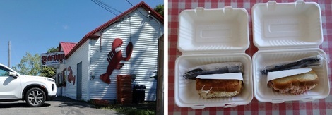 ・昼食は午前11時半頃、途中で「ロブスターの看板」があります「小さなレストラン?(下の左写真)で。。。