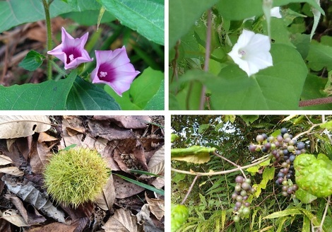 左下は「栗のイガ」で右下は「ヤマブドウ」でございます。