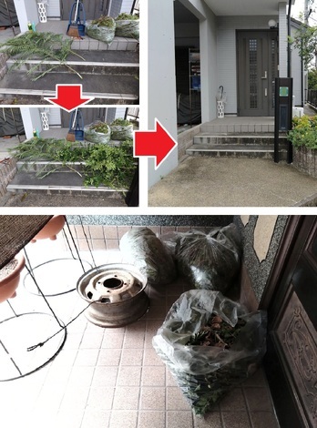 (下の右写真のごとく「片付け作業」をしていました玄関も綺麗に掃除しました。