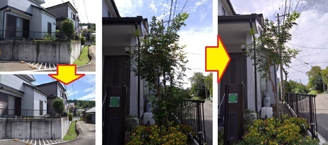 ついで?でございますので、「玄関花壇の木の剪定(真ん中・右写真)」も・・・
