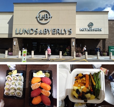 ・8月20日のランチは、ミネアポリスにあります「LUNDS&BYERLYS(読み方は「?」です)」という「スーパーマーケット」内の寿司コーナーで買いました「お寿司」を店内にあります「テーブル席(2テーブルで6人全員)」で食べました。