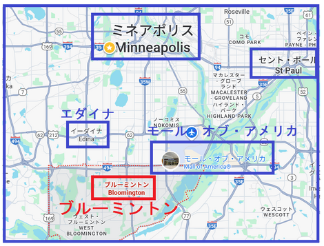・ミネアポリスの南の「ブルーミントン(下の地図)」にありますレストランです。