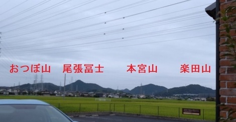 (下は喫茶店駐車場からの「おつぼ山」「尾張冨士」「本宮山」「楽田山」です)