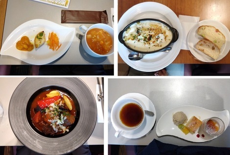 左下は私が注文しました「プロバンス風牛肉のトマト煮込み(写真はありませんがライスも)」、右下は「デザートとコーヒー」ですo(^◇^)o