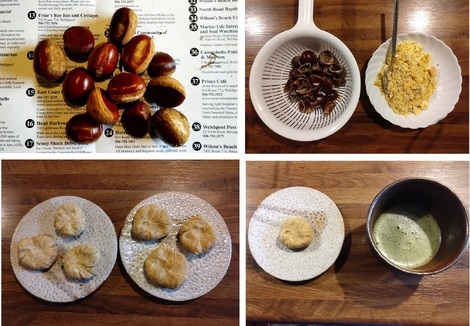 昼食後、私も手伝いまして今朝採って参りました「栗(13個)」をふーたんが「栗きんとん(6個)」に・・・