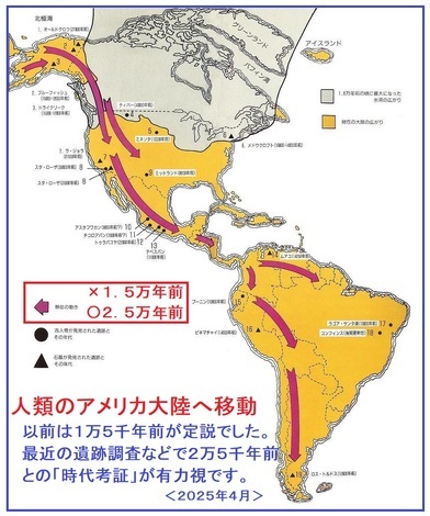 ・以前に何度も書かせて頂きましたが、アメリカ大陸へは「1万4~5千年前(2.5万年前の説もあります)」にユーラシア大陸から人類が渡って来たようです。