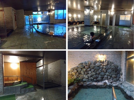 (下の上段写真が「内風呂」で、左下は「サウナ」右下は「露天風呂」です。