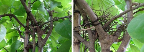 アレマァ! 小さい方の木蓮に「山鳩の巣」が・・・