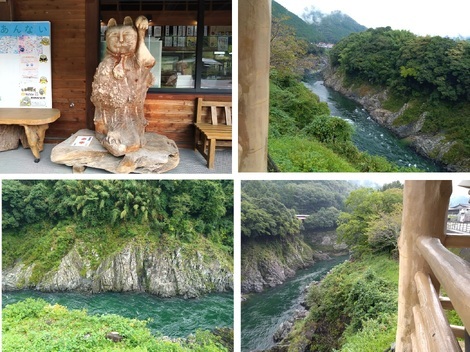 ・道の駅の横には「飛騨川(下の3枚の写真)」を見下ろせます「展望台」がありまして、展望台の下には「遊歩道」がありますが、「先ほどまで雨」でしたので止めました。
