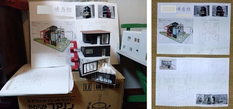 午後4時前後(だったかな?)に上の孫が「自分の作品の設計図面(下の右写真)」を持参しました。