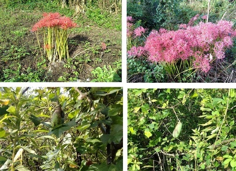 「彼岸花(下の上段写真)」は終わりかけていました、「あけび(下段写真)」は2か所健在でした。