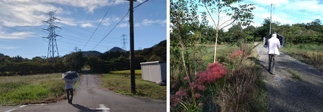 (下の左写真は迂回コースにあります「橋」から「合流地点」へ向かうところで、右写真は合流地点から「橋」方向へのUターンです)