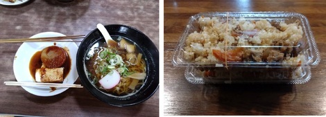 (二人とも「おでん・中華そば」でございまして、帰りに「味ご飯(2パック)」をテイクアウト(夕食用)」しました)