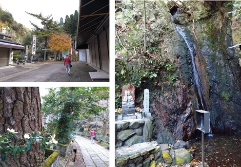 下の写真はお散歩の行きで、右写真は「本堂・奥の院」への途中にあります「小さな滝」です。