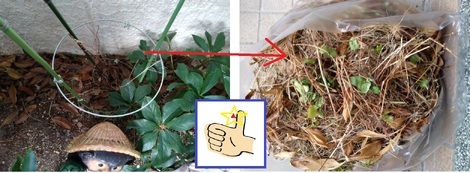 朝、新聞を取りに参りました時、枯れかけています玄関花壇の「クレマチス(テッセン=鉄線)」をエイヤーとむしりましたらァ~!