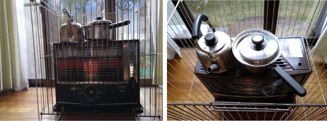 さっそく「やかんとお鍋」を掛けまして「(灯油)ストーブは暖かいねェ~!」と。。。(´∀`)