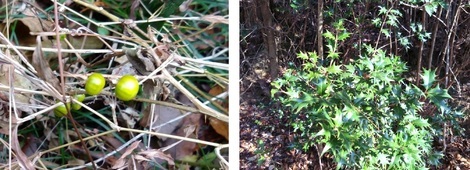 今日パチリしました植物は行きの脇道脇の「ワルナスビ(左写真)」と上池横の「柊(ひいらぎ:右写真)」でございました。