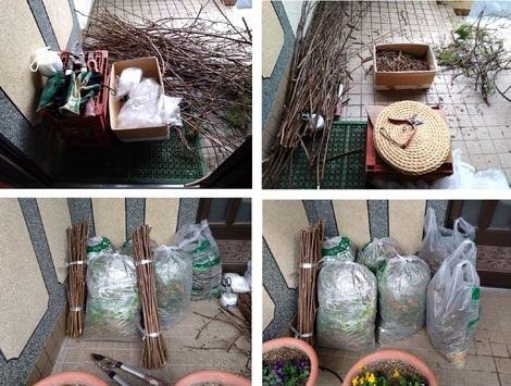 「太い木蓮の枝」は下段写真のごとく束ねましたヨ!