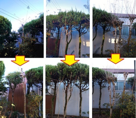 下の上段写真は「剪定前」で下段写真が「剪定後」です。
