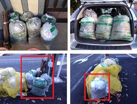 12月18日・19日に「剪定」しました「枝葉」は20日に「可燃ごみ袋6袋・枝の2束」になりました。