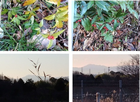 下の上段写真は行きの歩道脇で撮りました「千両・万両」で、下段写真は下池と中池からの「伊吹山(1377m:日本百名山)」です。