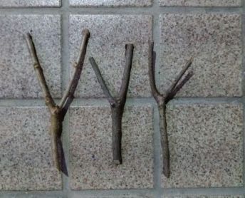 帰宅後その足で昨日のお散歩で拾ってまいりました「ミツマタの枝3本(下の写真)」を庭の金網に刺しました。 ← これにて「金網作業は完了」でございますゥ!