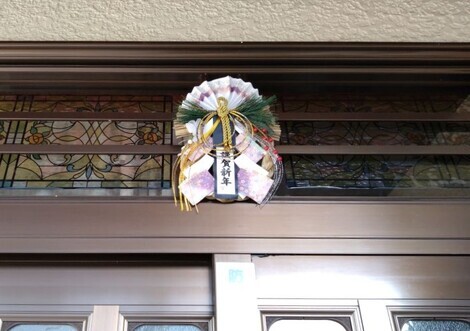 = しめ飾りの取り付けェ~! = 午後の仏壇掃除の後の作業でございましたァ~!