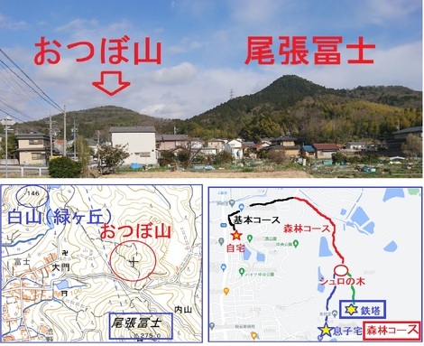 「鉄塔の位置」ですが、下の写真のごとく「尾張冨士」の北側に「おつぼ山(地元の呼称)」があります。