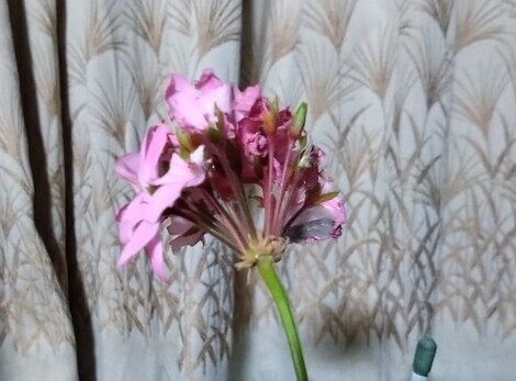 (下の写真は夜に撮りました南和室の南廊下で冬越ししています「ゼラニウムの花」です)