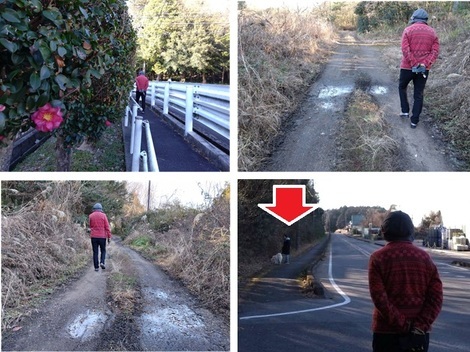 下の上段写真はお散歩の行きで、下段は帰りです。