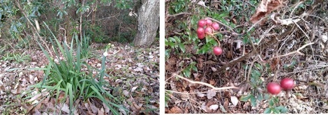 下の写真は散歩中にパチリしました「水仙」と「サンキラの実」です。