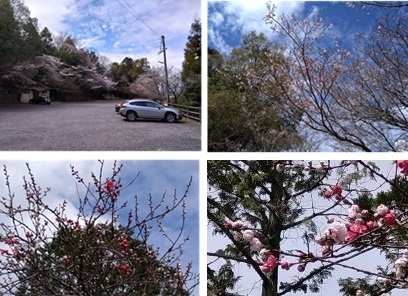 下の写真は駐車場でパチリしました「桜(上段)」と「花桃(下段)」です。