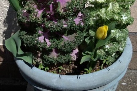 浅間神社から帰宅しますと、玄関前の「チューリップ」が一輪咲きかけていましたヨ!
