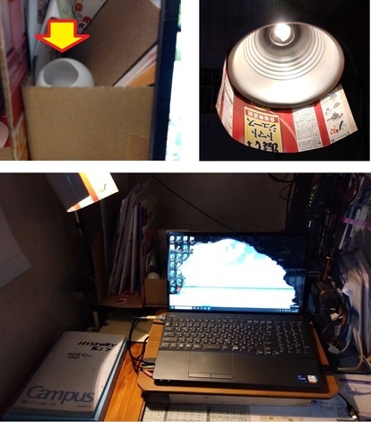 (下の下段写真の左の「ノート」は[HISTORY(我が家の年表)」ですが、おかげで明るいので書きやすくなりましたヨ! 昨日もせっせと・・・)