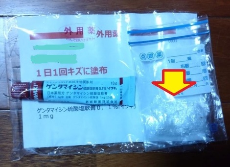 でも、水泳後の喫茶店では下の写真のごとく「アルコール消毒(右の「矢印」)と塗り薬」を・・・