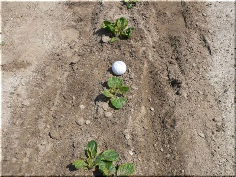 > 今年の植え付けは、男爵イモ3キロです。 > 今年の植え付け株数は種イモ3キロで150株の植え付けです。 > 少し少なめでした。 > 多い時には180株くらいに切り分けるのですが・・・
