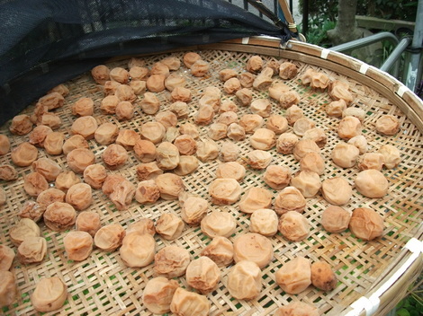 梅干しは生乾きを種を取り果肉だけにして、砂糖をふりかけて干し梅にしてみました、塩分控えめでつけたのにしょっぱいです。