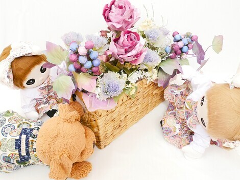 うおおおおおおおお こっちは 想定外だった 凄い! おおきな おおきな おねえちゃんたちサイズがどどど~んっと そして なんと 色 さくらねえちゃんのリアルな好みのイメージで めちゃくちゃびびってた。 (^^;) リアルに。 こちらは なんと 布花のアレンジ で 布花は まっしろな生地をそめて つくっているんだって。 なので 濡れている手でさわっちゃうと 色がおちて 最終的には まっしろに なるらしい 👀!! お料理をしたあと ちゃんと 手を拭かないとだよね。教えてくれてどうもありがと♡