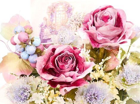 そして このお花の形 薔薇園でもみた 大好きな色 形 そして なんと このバスケットのイメージ そうそう こりんちゃん&白虎のおねえさんが つくってくれた カードのイメージと同じなの。 薔薇のアーチのところのイメージが同じでしょ。 さくら姉はこの世界観が大好きで こんな雰囲気のワンピースをかっちゃったぐらいに 好き♡な 世界観が そのまま 立体になりました。のは 偶然じゃないよね。 それとも 偶然? かりんちゃんとりんりんさんが愛情込めて 植えてくれたお花と こりんちゃんと虎白のおねえさんのカードの世界観 が すごい すごい 同じだって 大好きが目の前に。こちらは想像もしていなかったので すごく おどろいてしまったあ。 色もイメージも 今の好みにドンピシャ。 大好きななろう作家先生の世界観もこんな感じで もう 嬉しすぎる♡