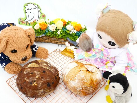 焼けた! こっちが葉っぱのような模様の チョコチップのカンパーニュ そして さくらちゃんのほうは 干し柿入りのカンパーニュ どうせならあそびごころで 色変えてもらった。 意外といい感じに。てまりねえちゃん 喜んでくれるかな?