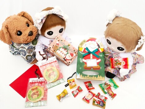 なんと なんと おおきな箱の中から 出てきたのは カリンちゃんとポップ君 ビート君 ニャン太郎君たちから ☆夢の子学園☆15周年おめでとう♡ の お祝いの品 と あと こっそりと さくらちゃんが かりんちゃんに おねだりしていた すてきなお花と 学園のクリスマスツリーにかざってね。っておかしなオーナメントと いま まま クリスマスリースやお正月のお飾りで いそがしいけど 絶対絶対 クリスマスパーティーには みんなで参加するから おいしいお料理 いっぱい食べれるように お手伝いしてます♡の かわいいクリスマスカードも一緒に。 いくつになっても おおきな段ボールって テンションあがるよね。