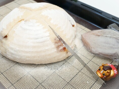 緊張しすぎて 手が ぷるるるんに💦 あゆおねえさんから届いたクープナイフで 十字に。す~っと 引いてあげると 自然にパンがぐい~んって。