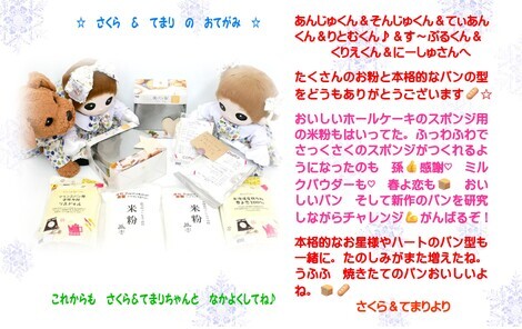 にーしゅさん おとさん あんじゅくん そんじゅくん てぃあんくん りとむ♪くん す~ぷるくん くりえくん よろこんでくれるかな? クロワッサンは 焼いただけ(今後のお勉強の資料 笑)にと。タイガ君の大好きなピクルスもそえて。 ありがとうの気持ちを いっぱい こめてみました。 小学生だったころから ずっとずっと 見守り続けてくれて本当にどうもありがと♡ いままでの 応援してくれた気持ちをこめて そして これからも いただいた お粉でおいしいものができるように! 凄いねって いっぱいほめてもらえるように なれたら いいなって おもいを こめて。 成長できたかな? 出会えてよかったわ♡って おもってもらえるかな? えへへ さあ さあ 夢♡café☆彡へ もっていかなくちゃ。 感想きかせてね。