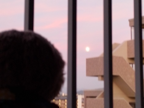 僕が見ているのは5時44分だよ。ママ、僕とお月さまを入れて撮影するの苦労していた⁉