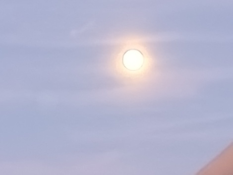 お月様、上っていくと周りが輝き出してとっても綺麗!肉眼ではお月さまのウサギさんたちもきれいに見えたんだけれど・・・映らない。😢 スマホではこれが限界かな?