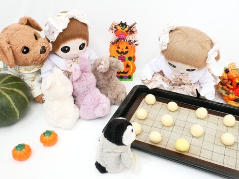 こ~ろころ もっちもち そうそう その黄色いのは おつきさまなんだよ。あれ?フルーツハンター部の部室が お茶会した形跡がのこってた うふ 夜中に 夢♡café☆彡によっていってくれたんだね。 今月もおいしいのがんばろっと。ハロウインパーティーや十五夜さん あそびにきてくれるかな? あとは オーブンでやいてっと。ちょっとまっててね。